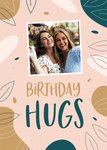 Kleurrijke verjaardagskaart met aanpasbare foto en de tekst: 'Birthday Hugs'. Verras iemand met deze leuke verjaardagskaart van Papercute.