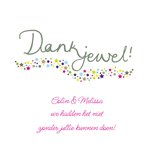 Vrolijke bedankkaart met aanpasbare naam.