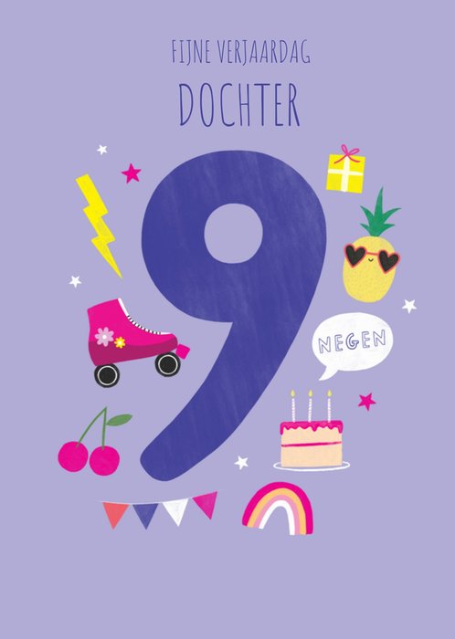 Wat leuk! Jij kent iemand die binnenkort jarig is. Stuur daarom een leuke verjaardagskaart van Paperlink. Op deze verjaardagskaart staat een grote 9 en de tekst: Fijne verjaardag dochter.