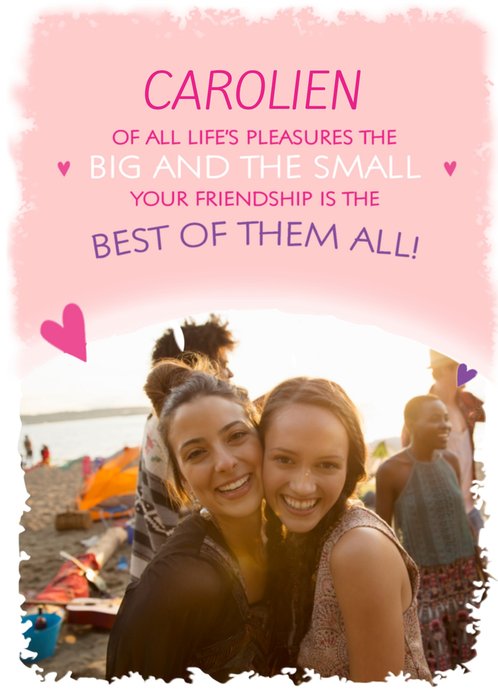 Vrolijke fotokaart met aanpasbare naam.
