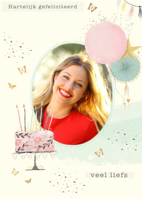 Leuke fotokaart met de tekst: Hartelijk gefeliciteerd veel liefs.