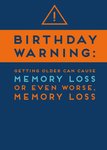Leuke verjaardagskaart met de tekst: Birthday warning: Getting older can cause memory loss or even worse, memory loss