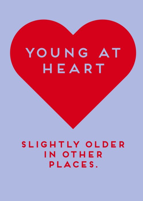 Grappige verjaardagskaart met de tekst: Young at heart. Slightly older in other places.