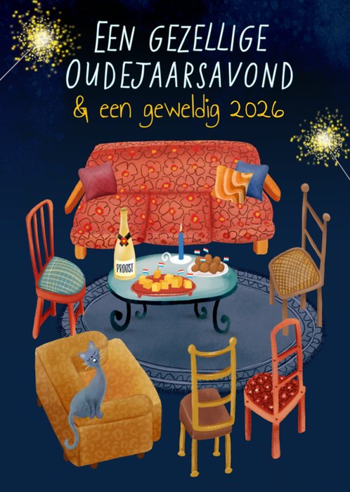Verras met deze feestelijk en leuk nieuwjaarskaart. De tekst is aanpasbaar.