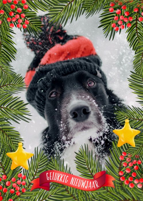 Verras met deze feestelijk en leuk nieuwjaarskaart. De foto is aanpasbaar.