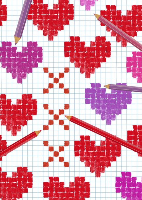 Illustratieve en kleurrijke valentijnskaart met hartjes. Verras iemand met deze leuke valentijnskaart van Fishuals.