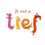 Typografische valentijnskaart met teckels en de tekst: 'Ik vind je lief'. Verras iemand met deze leuke valentijnskaart van Fishuals.