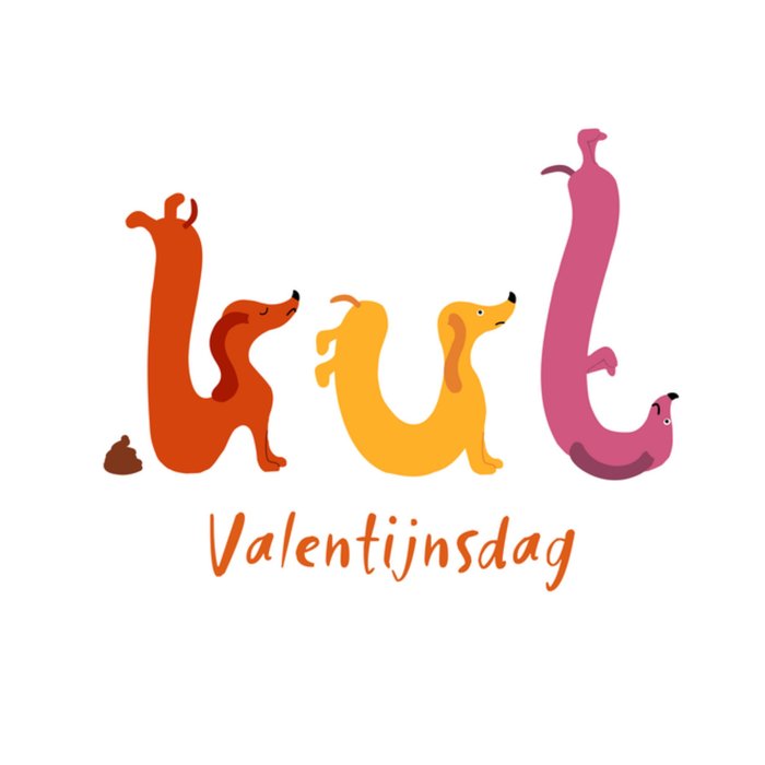 Kleurrijke valentijnskaart met teckels en de tekst: 'Kut valentijnsdag'. Verras iemand met deze leuke valentijnskaart van Fishuals.