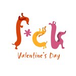 Kleurrijke valentijnskaart met teckels en de tekst: 'F*ck Valentine's Day'. Verras iemand met deze leuke valentijnskaart van Fishuals.