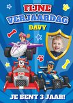 Verras met deze Paw Patrol verjaardagskaart. De tekst en foto zijn aanpasbaar.