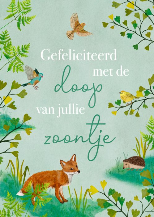 Schattige doop kaart met illustratie van dieren.