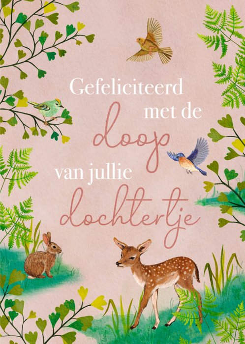 Schattige doopkaart met illustratie van dieren.