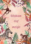 Wat een hippe kaart van Petit Konijn. Deze kaart kun je sturen voor een geboort van een meisje. Op de kaart staat: Welkom lief meisje.