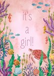 Vrolijke geboortekaart met zee thema en aanpasbare tekst.