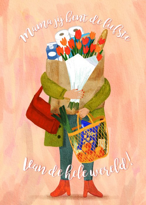 Leuke Moederdagkaart met illustratie en de tekst: Mama jij bent de liefste van de hele wereld.