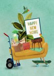 Wat een hippe kaart van Petit Konijn. Deze kaart kun je sturen als iemand een nieuwe woning heeft. Op de kaart zie je allemaal spullen en de tekst: Happy new home.