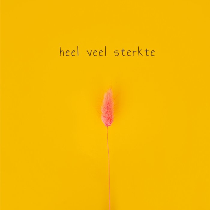 Lieve condoleancekaart met een gele achtergrond en de tekst 'Heel veel sterkte'. Laat iemand weten dat je aan hem denkt met deze fotografische condoleancekaart van Photoflash.