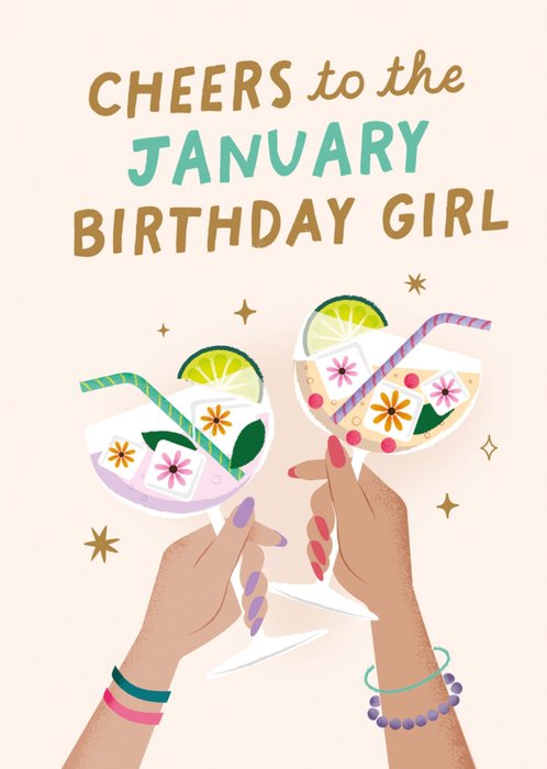 Alle januari baby's verzamelen! Hoe leuk is deze verjaardagskaart met de tekst: Cheers to the January birthday girl