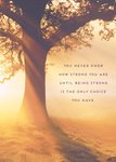 Mooie denken aan kaart met de tekst: You never know how strong you are until being strong is the only choice you have.