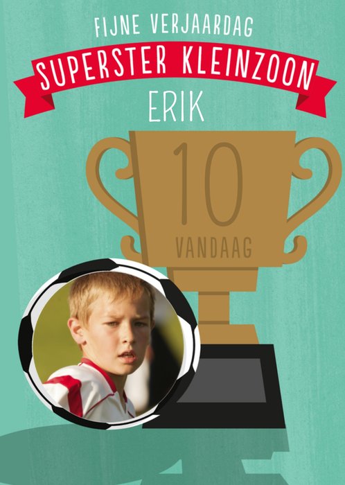Leuke verjaardagskaart met foto en naam voor een jarige kleinzoon.