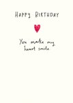 Lieve verjaardagskaart met de tekst: Happy birthday you make my heart smile.