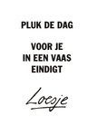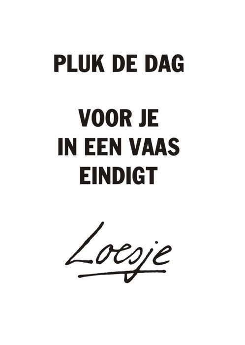 Vrolijke wenskaart van Loesje, met grappig tekst op de voorkant.
