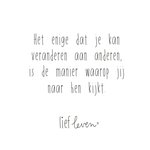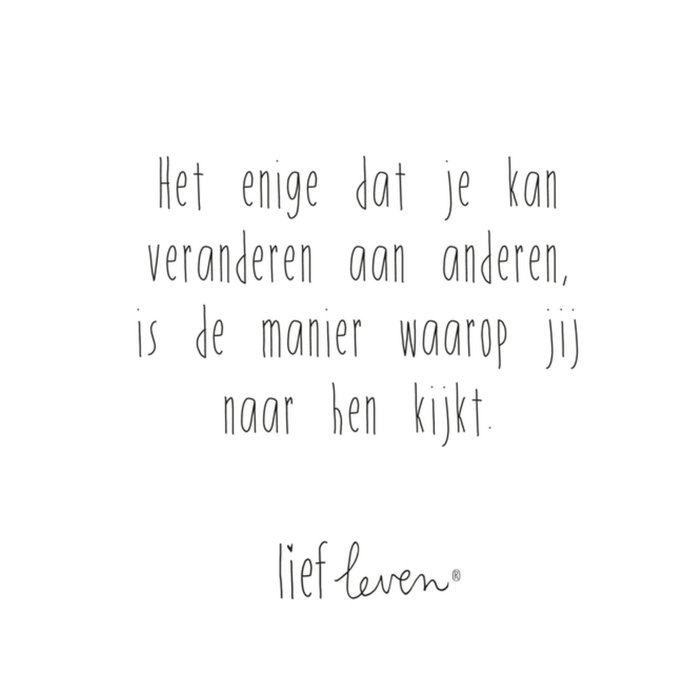 Op deze mooie quote kaart van Lief Leven staat: Het enige dat je kan veranderen aan anderen, is de manier waarop jij naar hen kijkt.