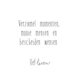 Op deze mooie quote kaart van Lief Leven staat: Verzamel momenten, mooie mensen en bescheiden wensen.