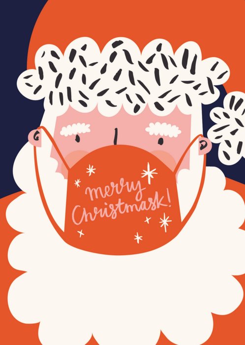 Grappige kerstkaart met illustratie van een kerstman met mondkapje en de tekst: Merry Christmask!