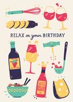 Leuke verjaardagskaart met illustratie en de tekst: relax on your birthday