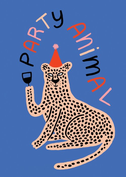 Leuke verjaardagskaart met illustratie en de tekst: party animal