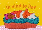 Dikkie Dik ligt vredig met zijn vriendje en teddybeer in het mandje te slapen. Erboven staat 'Ik vind je lief'.