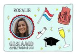 Verras met deze vrolijke geslaagdkaart. De tekst en foto zijn aanpasbaar.