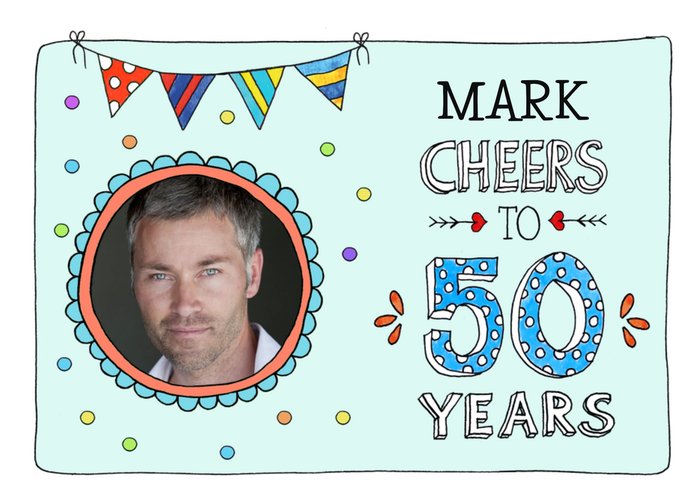 Sandysign | Verjaardagskaart | Cheers To 50 Years | Aanpasbare foto enn tekst