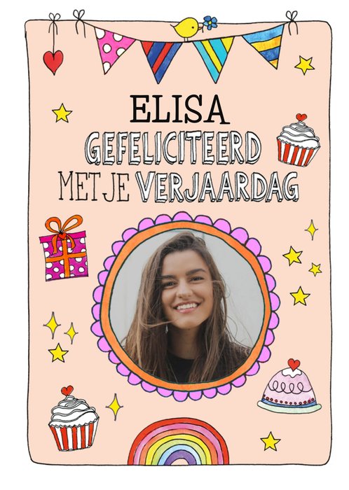 Sandysign | Verjaardagskaart | Gefeliciteerd Met Je Verjaardag Doodle | Aanpasbare foto enn tekst