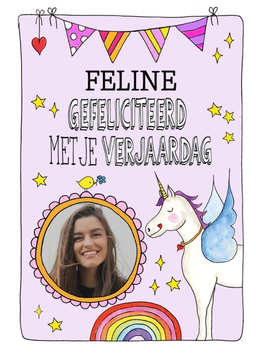 Sandysign | Verjaardagskaart | Gefeliciteerd Met Je Verjaardag Unicorn | Aanpasbare foto enn tekst