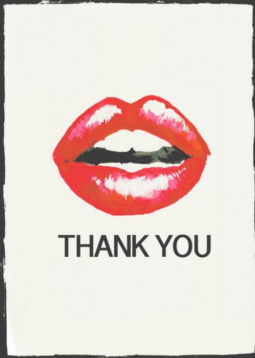 Bedanktkaart met illustratie van een mond en de tekst: Thank you
