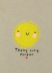 Schattige kaart met illustratie van een zonnetje en de tekst: Teeny tiny person