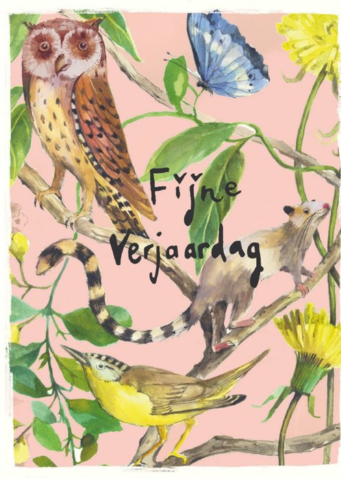 Leuke verjaardagskaart met illustratie en de tekstl: Fijne verjaardag.
