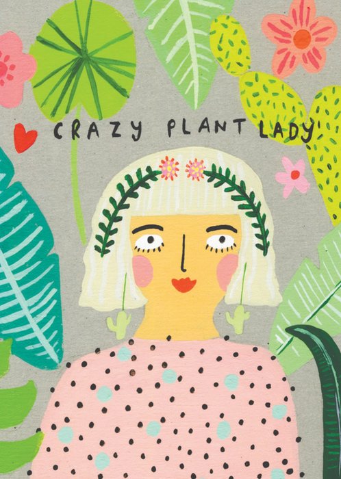 Leuke verjaardagskaart met illustratie en de tekst: Crazy plant lady