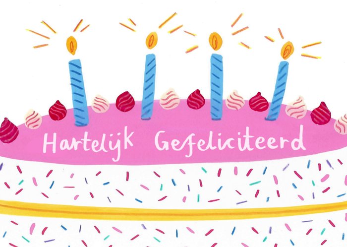 Leuke verjaardagskaart met illustratie en de tekst: Hartelijk gefeliciteerd.