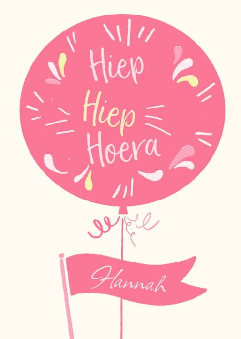 Vrolijke verjaardagskaart met illustratie en aanpasbare naam.