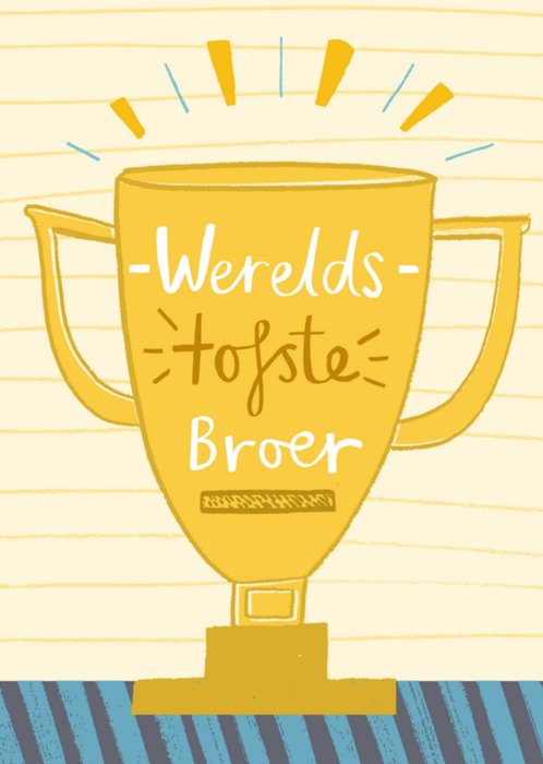 Leuke verjaardagskaart met trofee en de tekst: Werelds tofste broer.