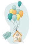 Leuke nieuwe woning kaart met ballonnen van Studio Fred Illustraties.