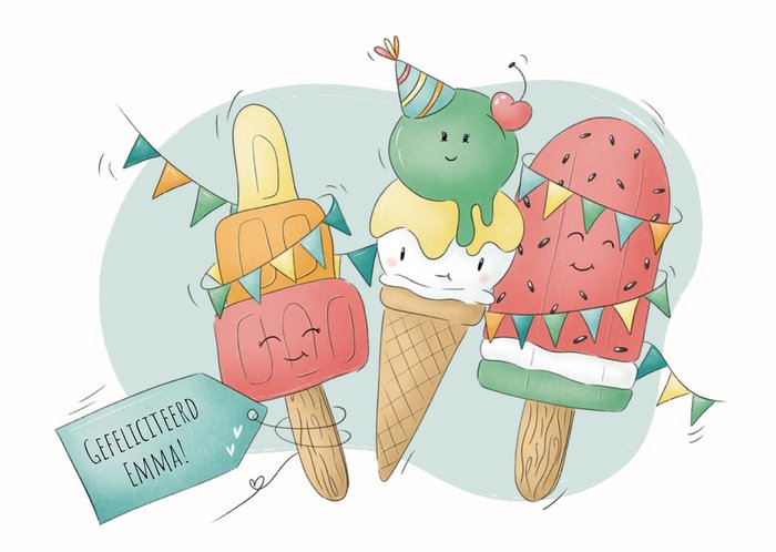 Leuke verjaardagskaart met ijsjes van Studio Fred Illustraties.