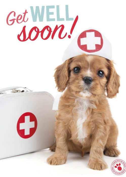 Wat lief he dit kaartje met een lief diertje erop van Studio Pets! Op deze kaart staat: get well soon!