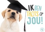 Feliciteer de geslaagde met zijn of haar diploma en laat weten hoe trots je bent met deze schattige kaart. Het hondje heeft zijn geslaagd-hoed al op.