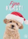 Wens vrienden en familie een fijne kerst met dit schattige kaartje. Op de kaart zie je een hondje met een muts en de tekst: fijne kerst.