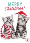 Wens vrienden en familie een fijne kerst met dit schattige kaartje. Onder de tekst zitten twee lieve katjes met een kerstsjaal en -muts op.