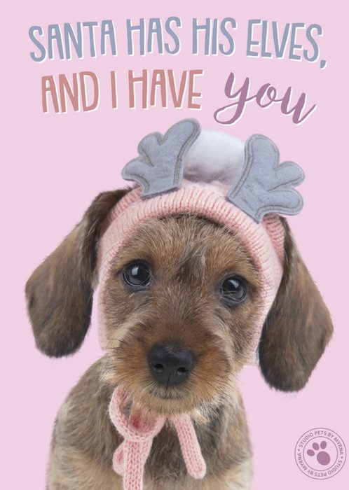 Leuke kerstkaart met hondje en de tekst: Santa has his elves, and I have you.
